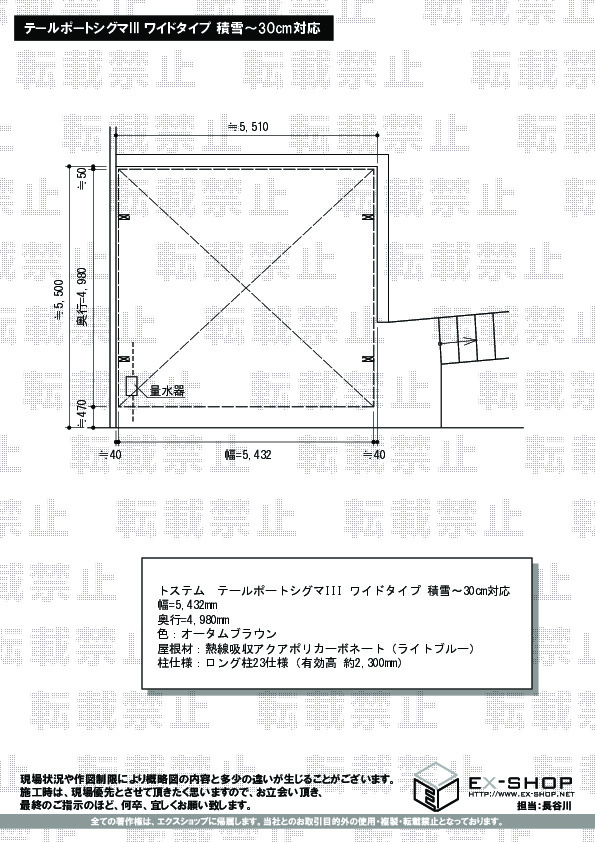 | 屋根高等 | ロング柱23仕様(有効高 約2,300mm) |