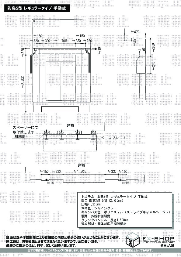サイズ | 間口 2,730mm 出幅 1,250mm |