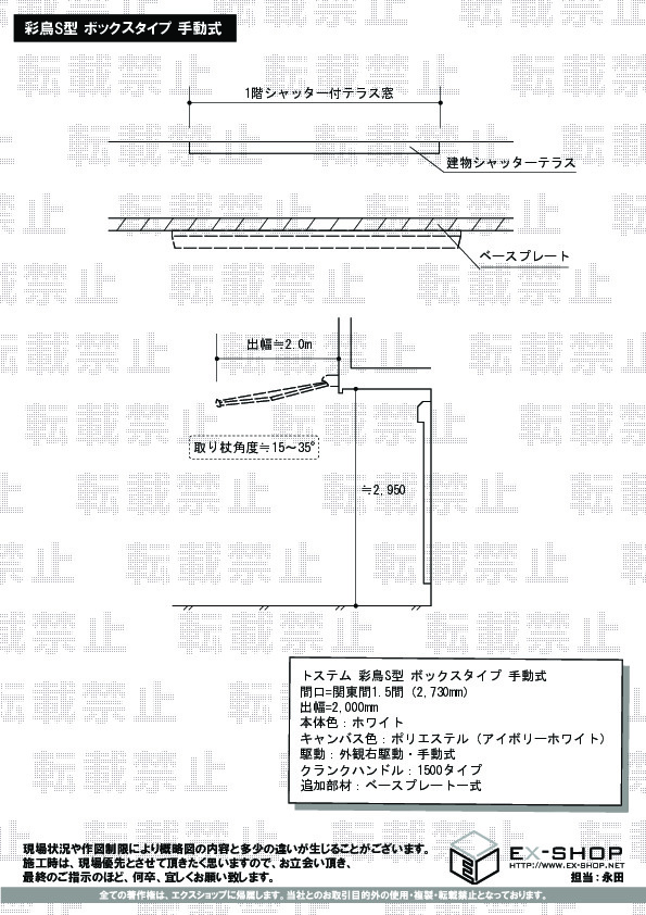 サイズ | 間口 2,730mm 出幅 2,000mm |