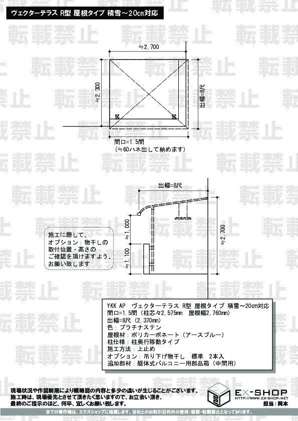 | サイズ | 屋根幅 2,760mm 出幅 2,370mm |