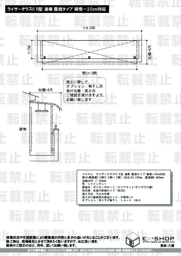 | サイズ | 屋根幅 5,480mm 出幅 1,185mm |