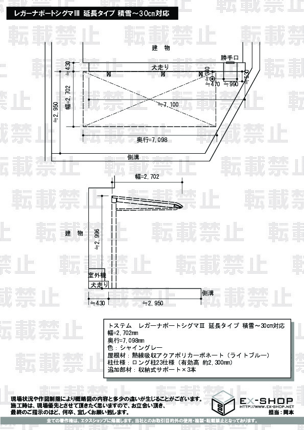 屋根高等 | ロング柱23仕様(有効高 約2,300mm) |