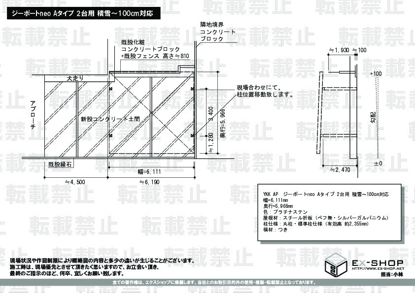 | 屋根高等 | 標準柱仕様(有効高 約2,355mm) |