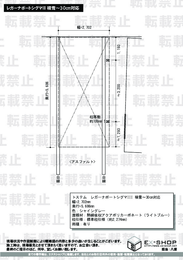 レガーナポートシグマIIIの施工をご依頼頂き、誠に有難うございます。上品なシャイングレーで、すっきりとしたデザインのカーポートが完成しましたこと、スタッフ一同大変嬉しく存じます。勾配の状況に応じて雨どいの位置を決めさせて頂きますことのご説明が至らず、誠に申し訳ございませんでした。今後は、確実な打ち合わせを心掛け、より満足して頂けるエクスショップを目指して参りたいと存じます。この度のご利用、誠に有難うございました。