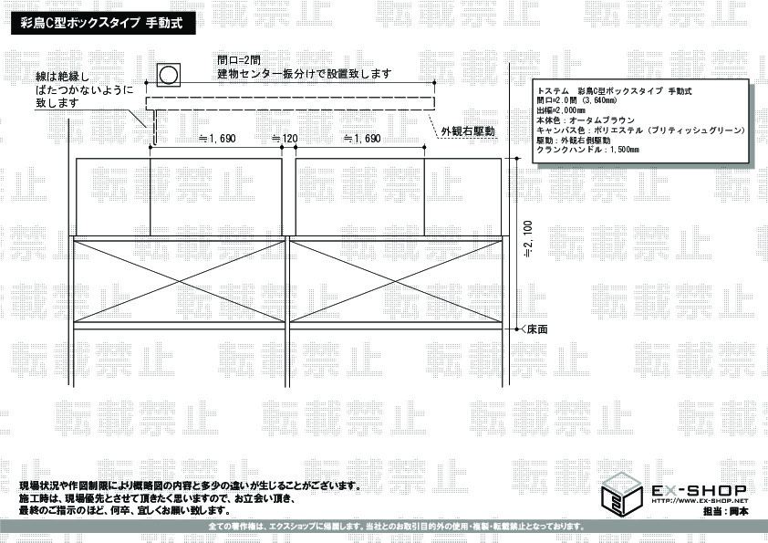 | サイズ | 間口 3,640mm 出幅 2,000mm |