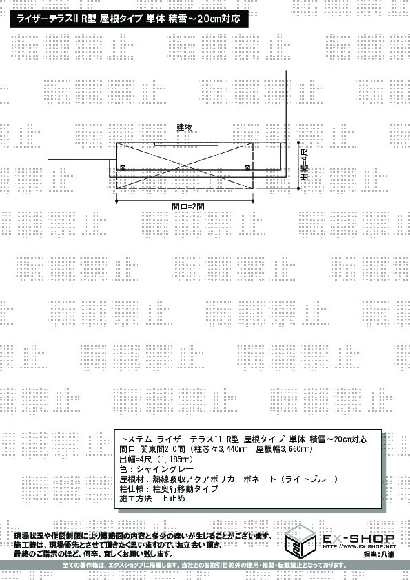 サイズ | 屋根幅 3,660mm 出幅 1,185mm |