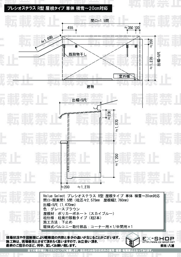 | サイズ | 屋根幅 2,760mm 出幅 1,470mm |