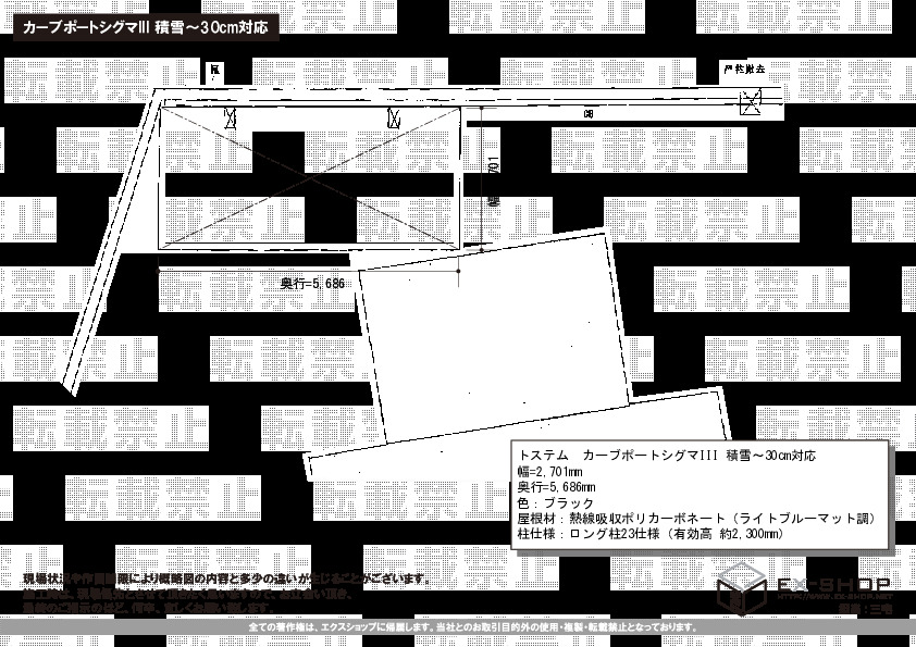 | 屋根高等 | ロング柱23仕様(有効高 約2,300mm) |