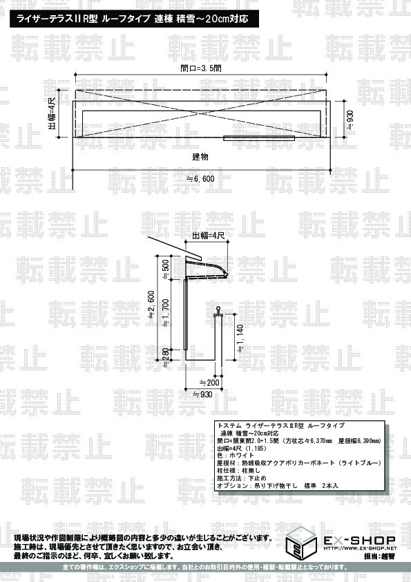サイズ | 屋根幅 6,390mm 出幅 1,185mm |