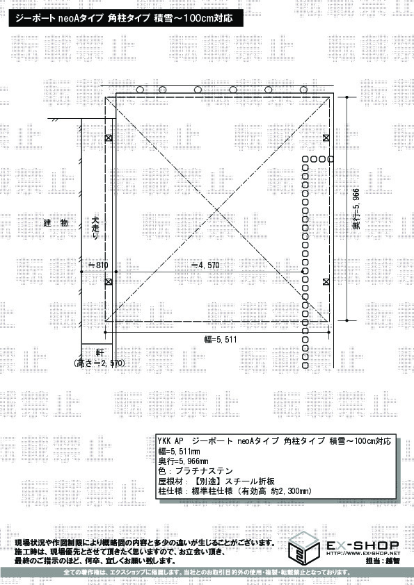 屋根高等 | 標準柱仕様(有効高 約2,300mm) |