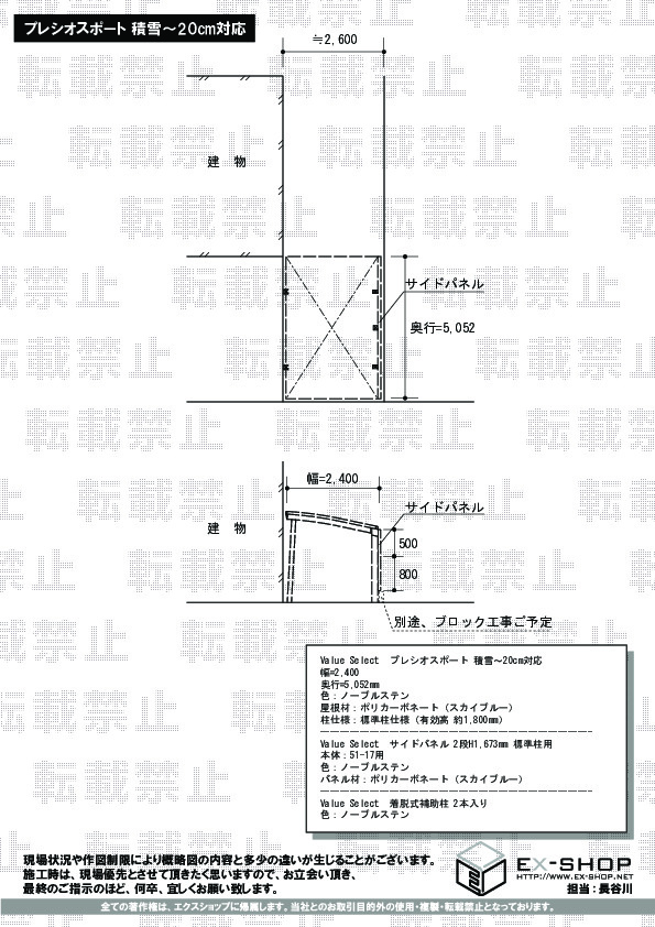 『地域密着あんしん施工』につきまして、ご期待に添うことが出来ず、心苦しく存じております。今後、信頼できる提携施工店の開拓に努めて参りたいと存じます。弊社オリジナルカーポートでありますプレシオスポートに、サイドパネルもあわせて施工させて頂きましたが、とても美しい、すっきりとしたお仕上がりでございますね。お気に召して頂き、永くご愛用頂けましたら、幸いでございます。これからも、お客様の笑顔の為に、日々努力して参りたいと存じますので、また、機会がございましたら、是非エクスショップをご利用頂けますよう、宜しくお願い致します。
