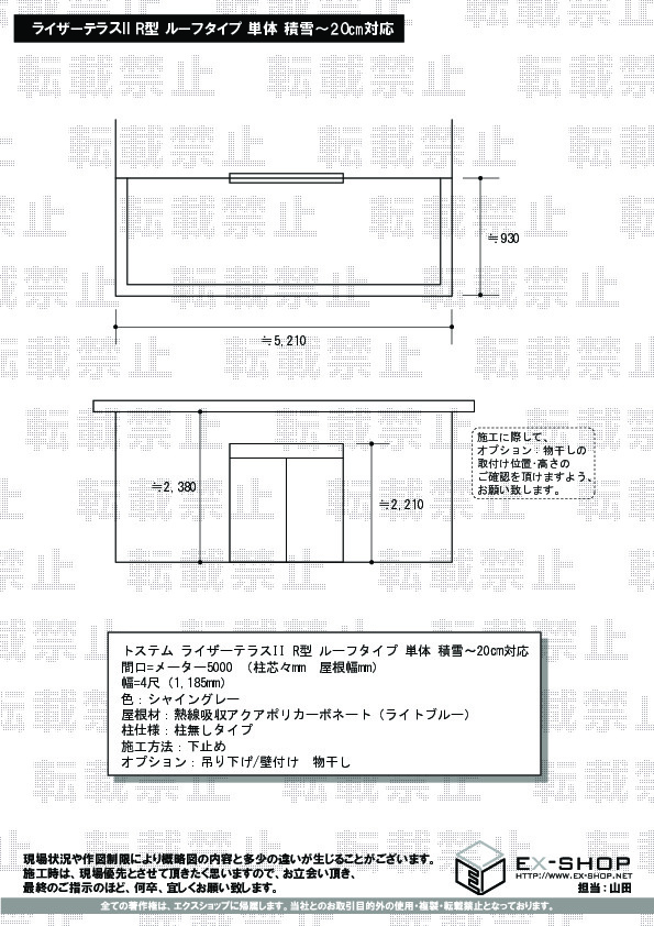 サイズ | 屋根幅 5,020mm 出幅 1,185mm |