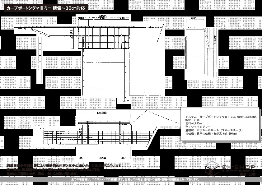 | 屋根材等 | ポリカーボネート(ブルースモーク) |