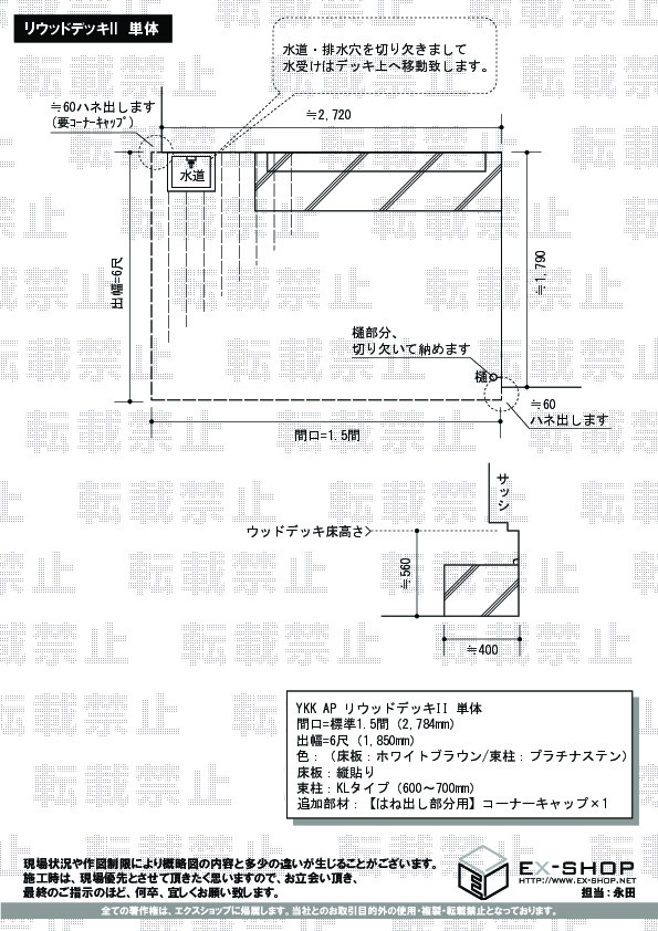 | サイズ | 間口 2,784mm 出幅 1,850mm |