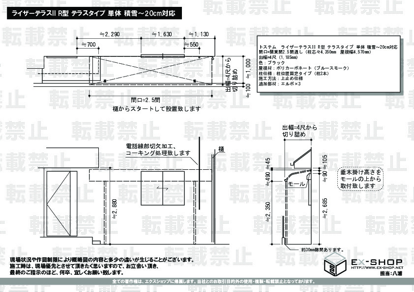 サイズ | 屋根幅 4,570mm 出幅 1,185mm |