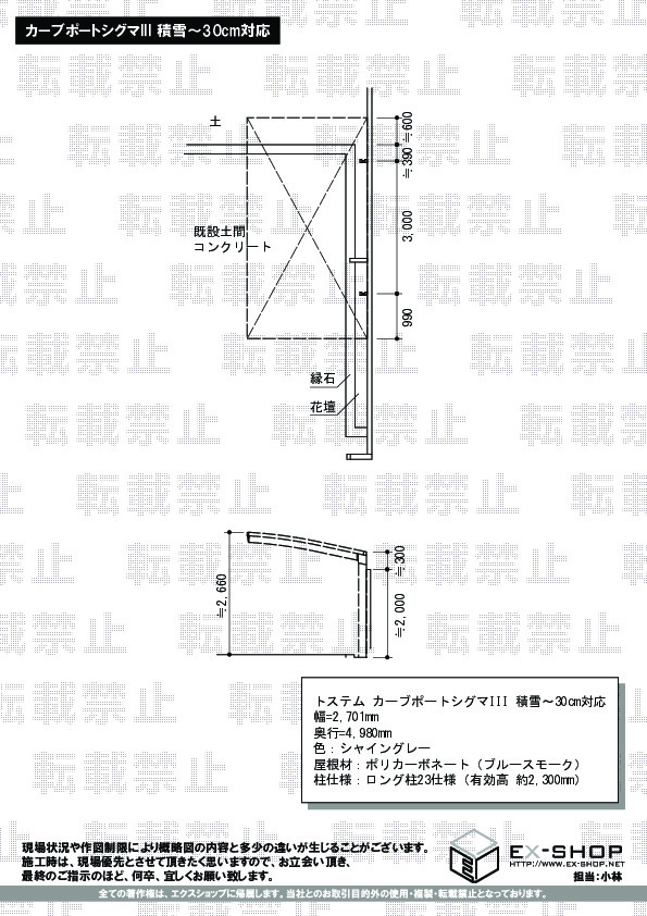 屋根高等 | ロング柱23仕様(有効高 約2,300mm) |