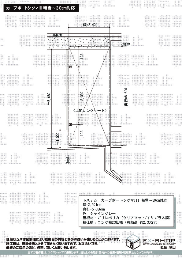 屋根高等 | ロング柱23仕様(有効高 約2,300mm) |