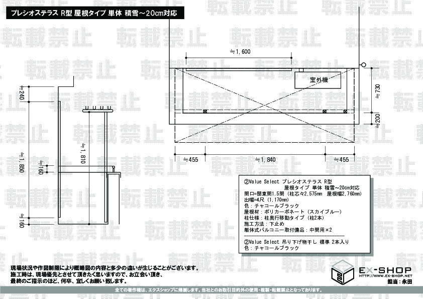| サイズ | 屋根幅 2,760mm 出幅 1,170mm |
