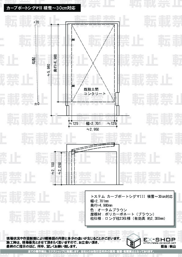 | 屋根高等 | ロング柱23仕様(有効高 約2,300mm) |