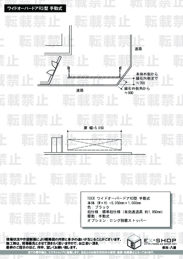 TOEX ワイドオーバードアR1型 ハイルーフ電動タイプ 5400x1000