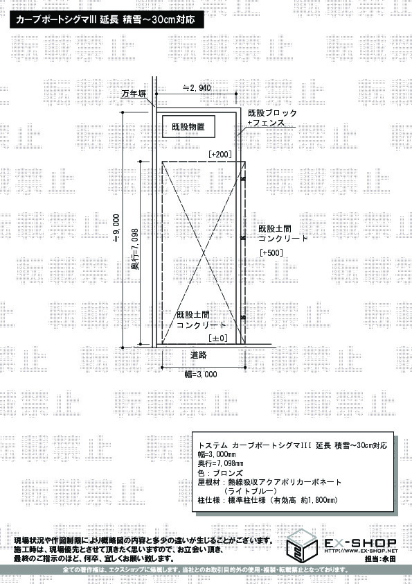 サイズ | 幅 3,000mm 奥行 7,098mm |