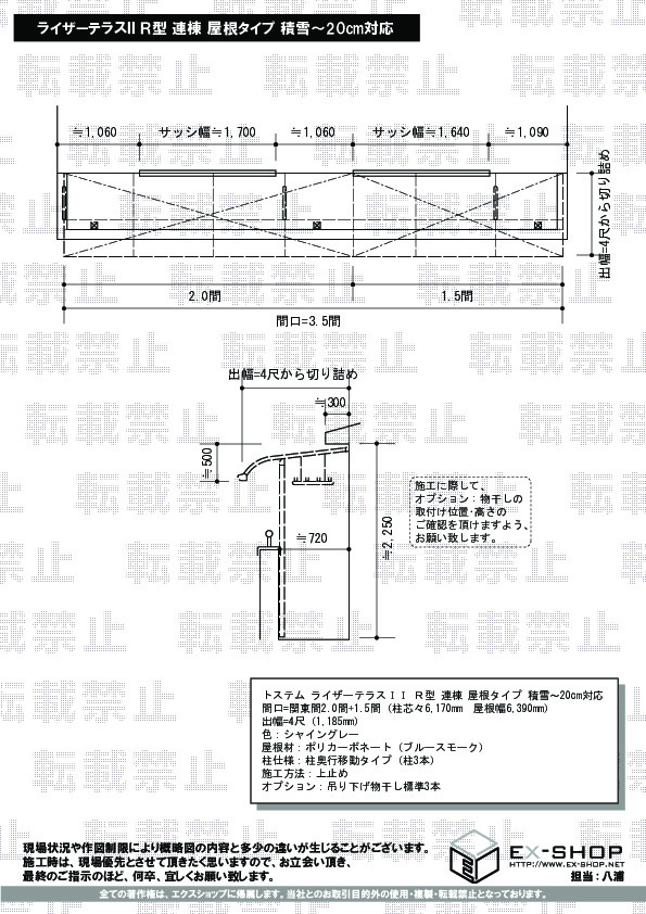 サイズ | 屋根幅 6,390mm 出幅 1,185mm |