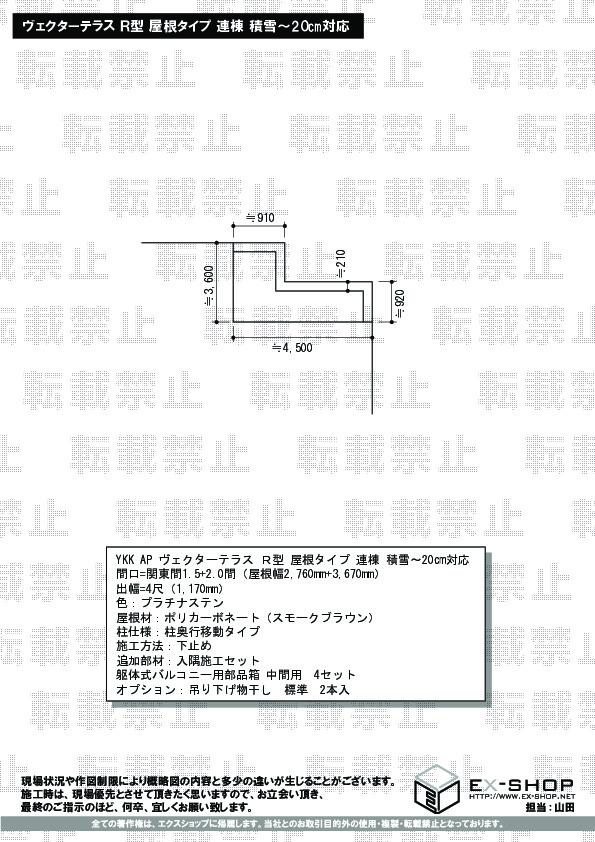| サイズ | 屋根幅 2,760+3,670mm 出幅 1,170mm |