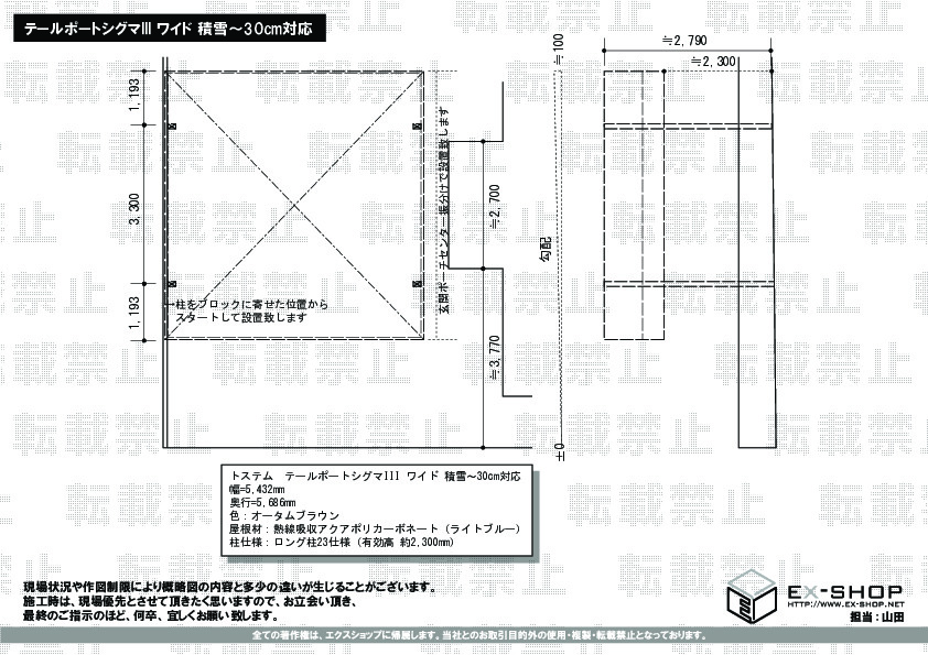 | 屋根高等 | ロング柱23仕様(有効高 約2,300mm) |