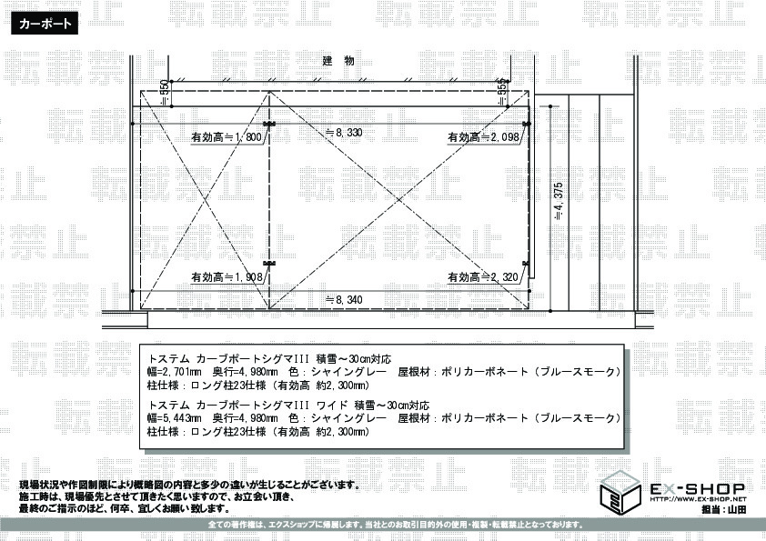 | 屋根高等 | ロング柱23仕様(有効高 約2,300mm) |