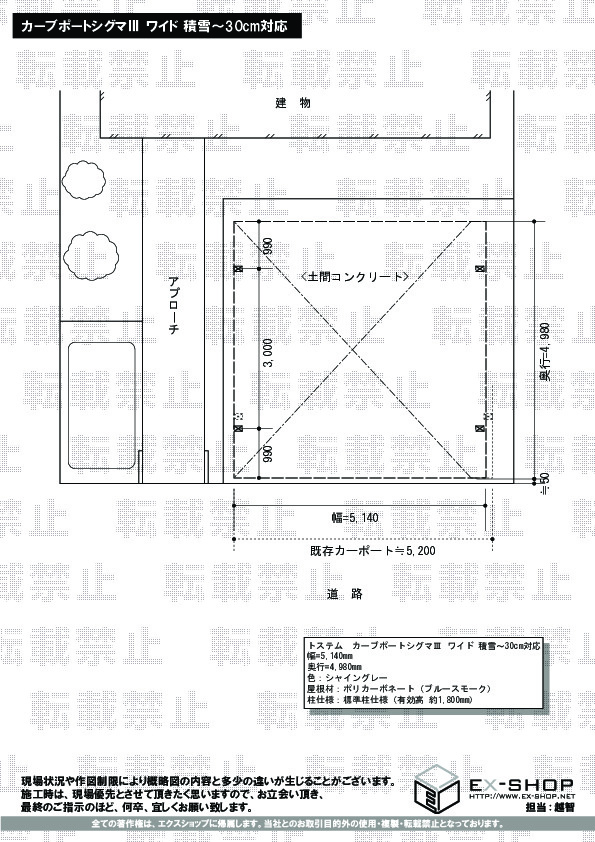 | 屋根材等 | ポリカーボネート(ブルースモーク) |