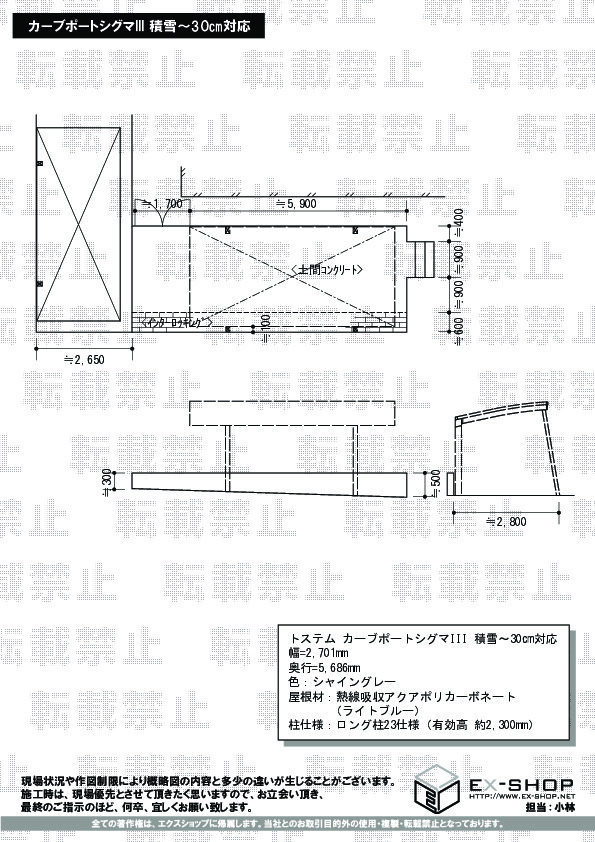 屋根高等 | ロング柱23仕様(有効高 約2,300mm) |