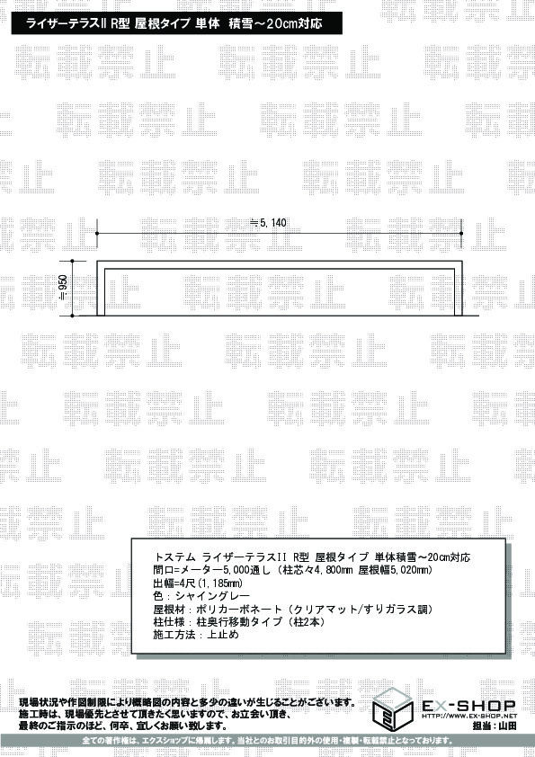 サイズ | 屋根幅 5,020mm 出幅 1,185mm |