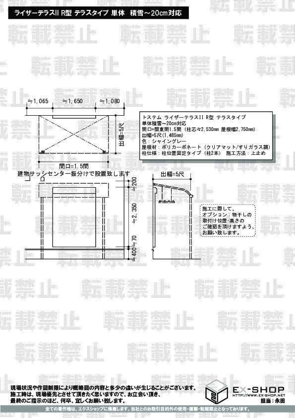 サイズ | 屋根幅 2,750mm 出幅 1,485mm |