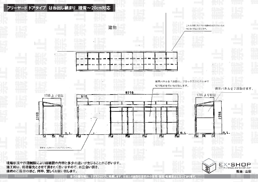 | サイズ | 間口 7,300mm 出幅 1,695mm |