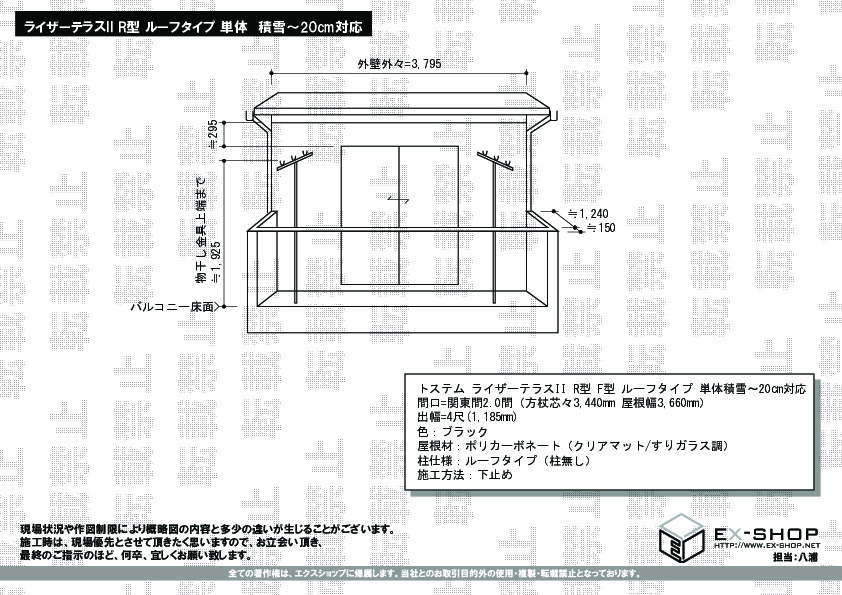 サイズ | 屋根幅 3,660mm 出幅 1,185mm |