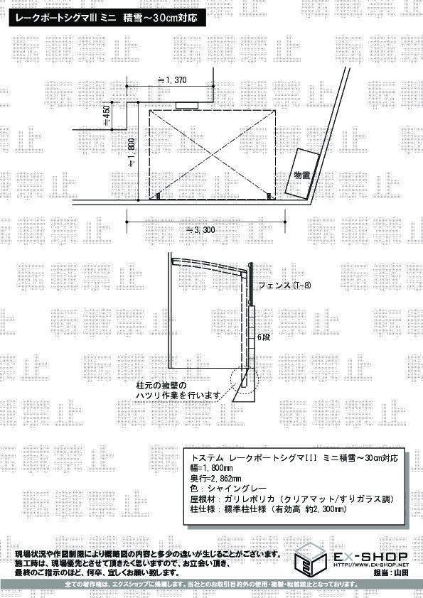 この度はエクスショップをご利用頂きまして、誠に有難うございます。光を通します明るいお屋根のレークポートシグマIII ミニのお仕上がりに、ご満足のお声を頂き、大変嬉しく存じます。ロング柱のご利用で、すっきりとした納まり具合でございますね。今後益々精進して参りますので、次回エクステリアの施工をご検討の際にも、弊社をご利用頂ければ幸いでございます。