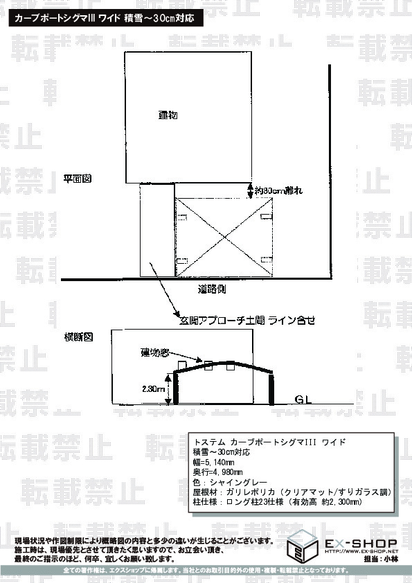 | 屋根高等 | ロング柱23仕様(有効高 約2,300mm) |