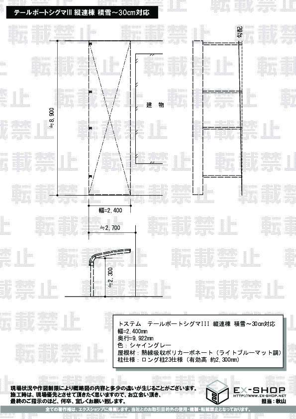 屋根高等 | ロング柱23仕様(有効高 約2,300mm) |