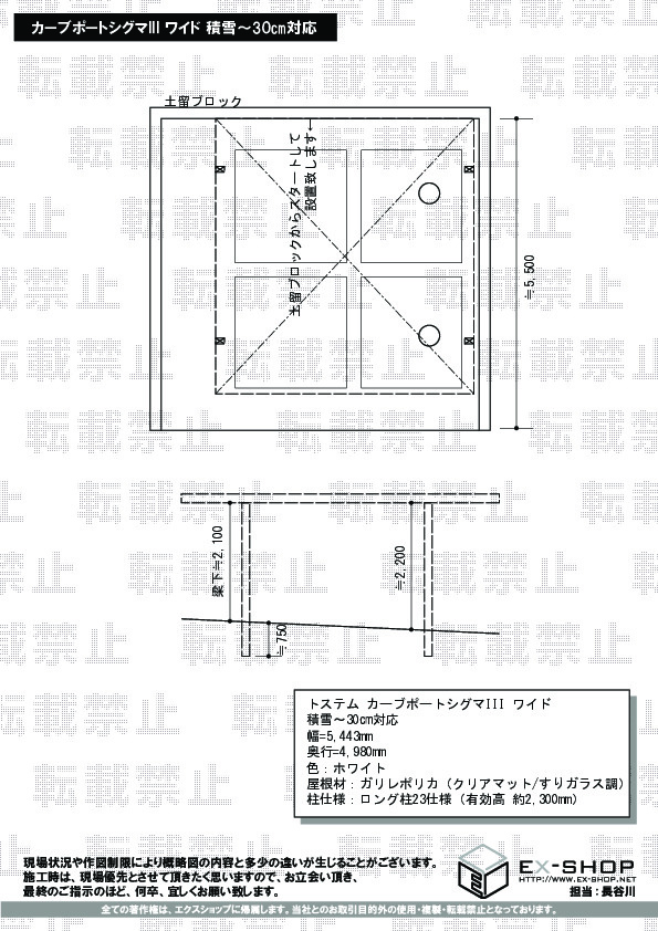 | 屋根高等 | ロング柱23仕様(有効高 約2,300mm) |