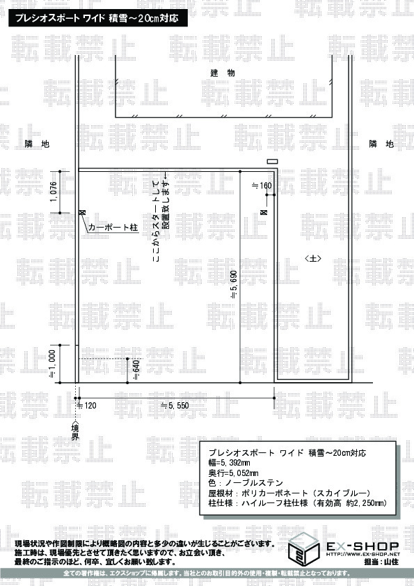 | 屋根材等 | ポリカーボネート(スカイブルー) |
