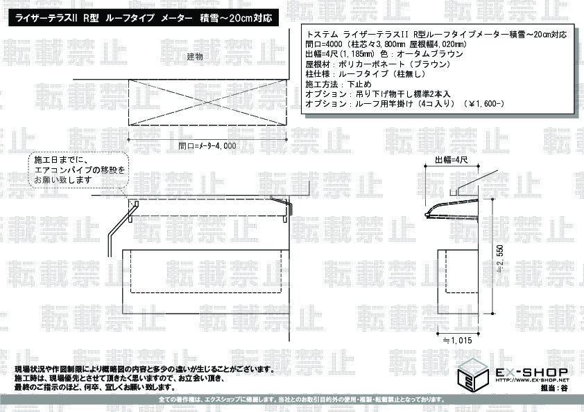 | サイズ | 屋根幅 4,020mm 出幅 1,185mm |