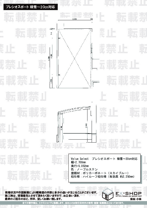 | 屋根材等 | ポリカーボネート(スカイブルー) |