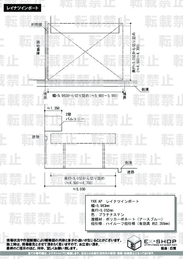 この度は、レイナツインポートの施工ご依頼を頂き誠に有り難うございます。ご自宅前の広いスペースを、きっちりと囲うワイドタイプのカーポートで雨にも濡れず、素敵なお仕上がりでございますね。私どもは常にお客様に安心してご依頼頂き、施工にご満足頂くことを願っておりますので、このようなお言葉をお寄せ頂き、大変嬉しく存じます。今後も、お客様にご満足頂ける様、日々精進して参りますのでまた機会がございましたら是非エクスショップをご利用下さいます様、宜しくお願い致します。