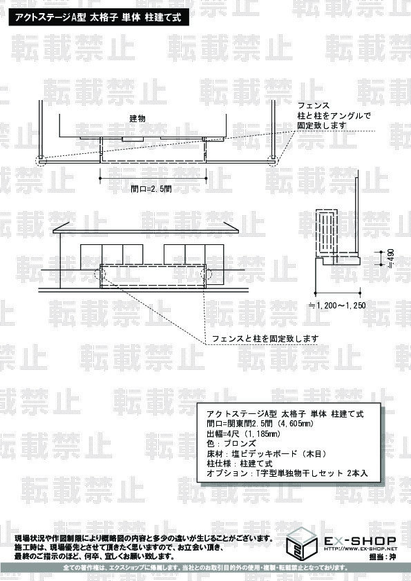| サイズ | 間口 4,605mm 出幅 1,185mm |