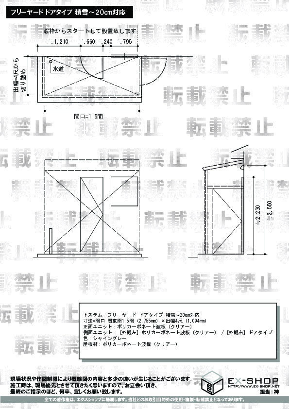 | サイズ | 間口 2,755mm 出幅 1,094mm |