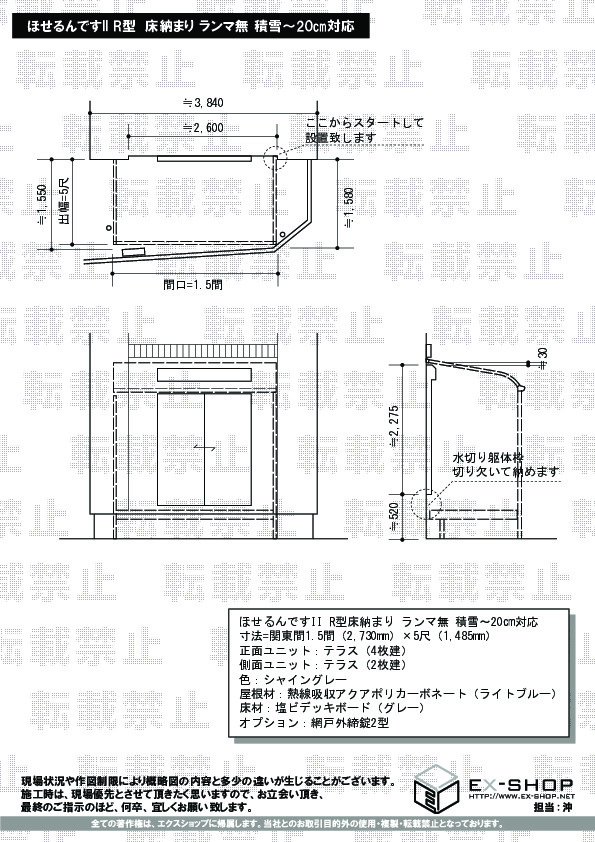 | サイズ | 間口 2,730mm 出幅 1,485mm |