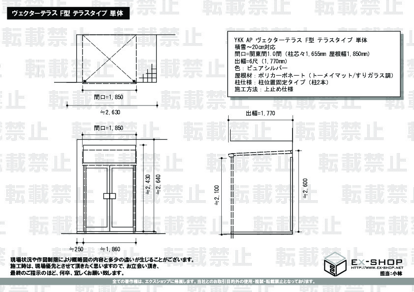 サイズ | 屋根幅 1,850mm 出幅 1,770mm |