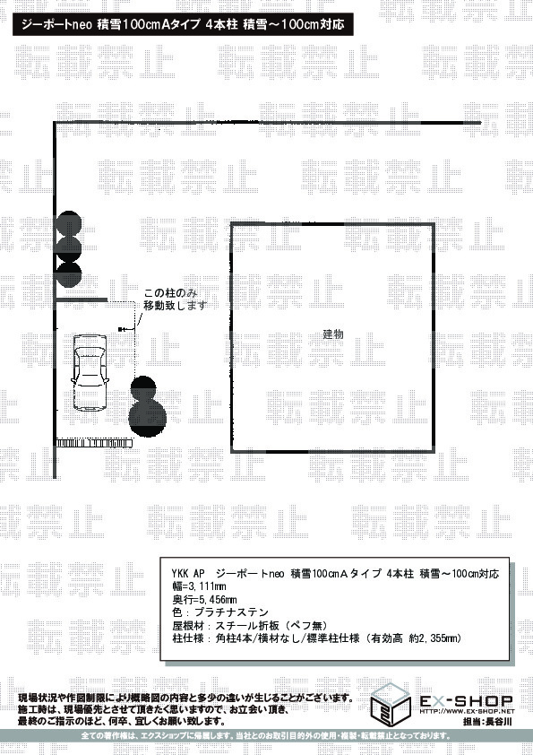 この度は、ジーポートの施工ご依頼を頂き誠に有り難うございます。施工を伴います商品を、顔の見えないネットショッピングでご依頼頂くにあたりましては、ご不安に思われることも多かったかと存じますが、弊社を信頼してご用命くださり、誠に有り難うございます。堂々とした存在感のある、素敵なお仕上がりでございますね。今後も、お客様にご満足頂ける様、ン日々精進して参りますのでまた機会がございましたら是非エクスショップをご利用下さいます様、宜しくお願い致します。
