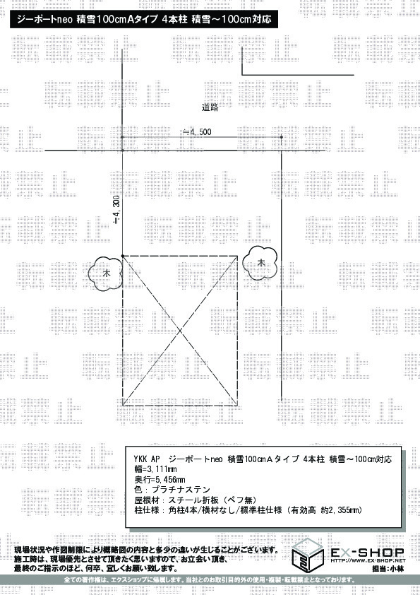 | 屋根高等 | 角柱4本/横材なし/標準柱仕様(有効高 約2,355mm) |