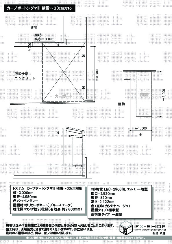 | 屋根高等 | ロング柱28仕様(有効高 約2,800mm) |